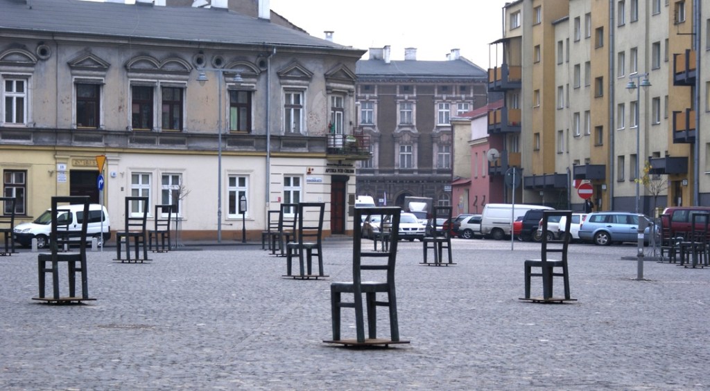 One of the most moving places we visited was Ghetto Heroes Square. The square contains dozens of large metal chairs scattered across the space. These chairs symbolise the furniture Jewish residents were forced to carry with them when they were relocated to the ghetto.