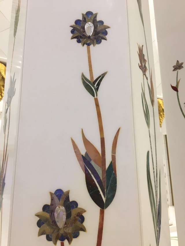 Every part of the mosque is incredibly detailed, but my favourite feature has to be the marble columns decorated with hand-painted floral designs. Each one is unique, and the leaf details on the crowns of the columns are made using real gold.