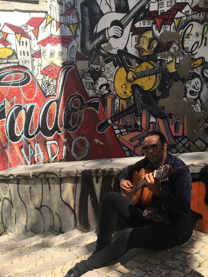 One particularly charming alley we passed was Escadinhas de São Cristóvão, famous for its colourful street art celebrating Fado, the soulful Portuguese music style known for its melancholic melodies.