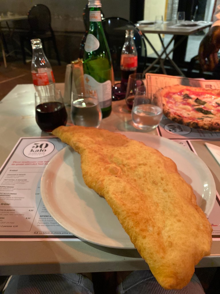 We then went to grab some dinner, which proved to be quite challenging as it was 9pm. A few locals suggested we check out 50 Kalo which was only 3 minutes’ walk from our apartment. Straight away, we knew this was a great shout as people were queuing to the end of the street! There was quite a long waiting list as people and food delivery guys were surrounding the entrance. When we eventually got a seat, we decided to go for one Margherita pizza and one friend pizza. The pizza was soooooo good!
