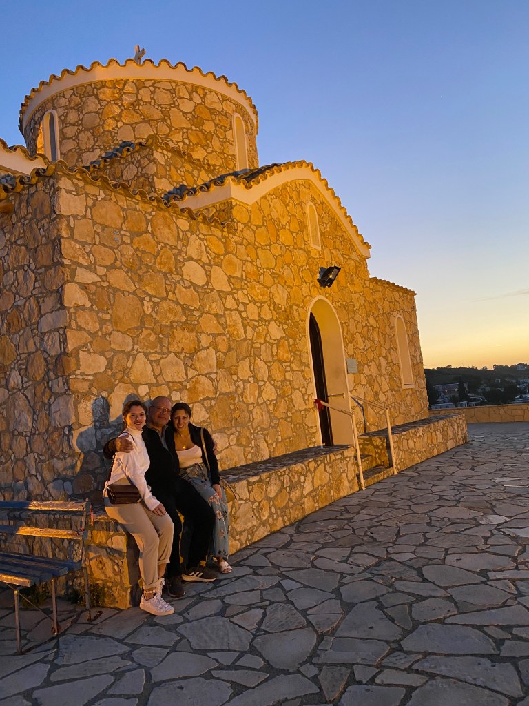 For two evenings, we went to watch sunset in a nearby church. The Church of Prophet Elias is built on a steep Cliff in Protaras, 10 minute’s walk from our hotel. This chapel was built in 1984 and was built on the site of another smaller Byzantine chapel. Access to the chapel is a bit difficult as anyone who wishes to visit it has to climb 156 stairs! We loved our time up here and took some cute family shots. There were lots of cats playing with us. I am not a cat person but they were adorable and really friendly – too friendly that my dad was playing with them, forgetting that he sometimes get a reaction from them. He had a bit off a swollen eye for the rest of the night but luckily it went away by the morning – ooops!