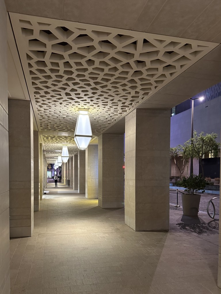 After drinking some karak tea, we continued on our short layover tour of Doha by paying a visit to Msheireb Downtown Doha. This was influenced by my architect husband whose former company designed this area. Msheireb is the world’s first sustainable downtown regeneration project which aimed to revive the old commercial destination with a modern appearance. Influenced by the Qatari heritage and architecture. I loved the simplicity, space and layering of the area.