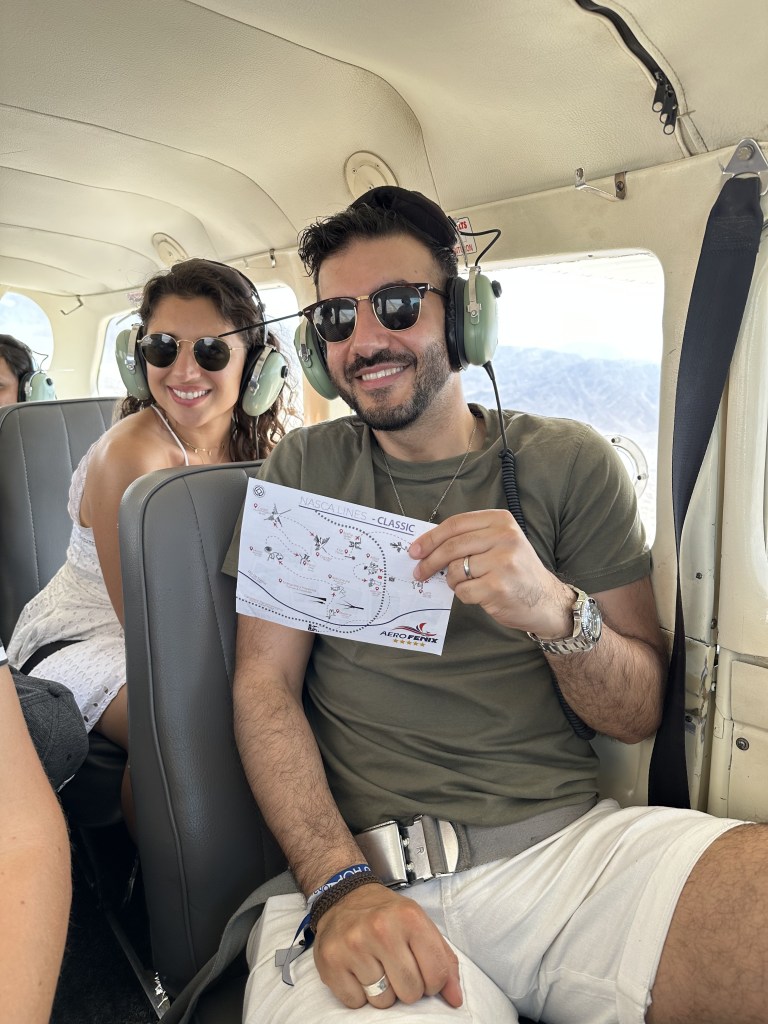 As we missed the 11am flight that we were originally meant to be on, we had to wait an hour in the airport before the next available flight. Make sure you don’t eat anything beforehand as it’s a nauseating flight. We just had a coffee, but we regretted having even that. We eventually got on the plane – the smallest plane I’ve ever been on as it only had 6 passenger seats! We put on the huge, noise-cancelling headphones so that the co-pilot, who led the tour could speak to us. She pointed out the various markings and explained what they were believed to depict. What makes your stomach fall through the floor of the plane is that the plane goes left and then right for each drawing so that we could each see out of our windows. I don’t usually get motion sickness, but the twists and turns were pretty intense. Despite this, we had an incredible time. My favourite was the ‘astronaut’.