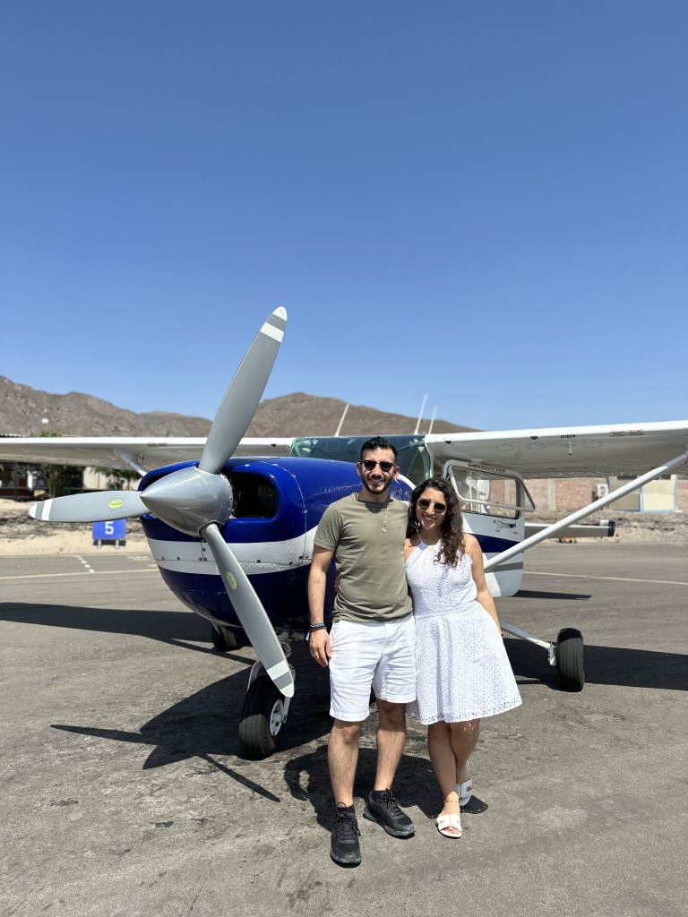 We got up early to meet the Peru hop guide in front of Wild Rover Hostel. We took the 3-hour minibus/ private transfer directly to Nazca airport. The bus took almost 3 hours, through a monotone sepia landscape of seemingly endless desert plains.