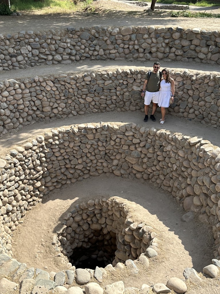 The spiralled wells have a design that makes getting to the water at the bottom even more accessible. We could actually see these when we took the flight above the Nazca lines, just before we landed. One thing to remember is to bring mosquito spray as we got bitten all over!