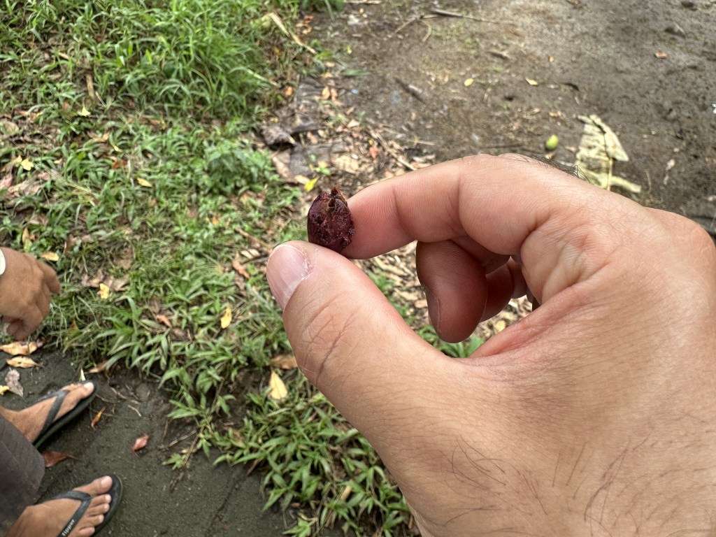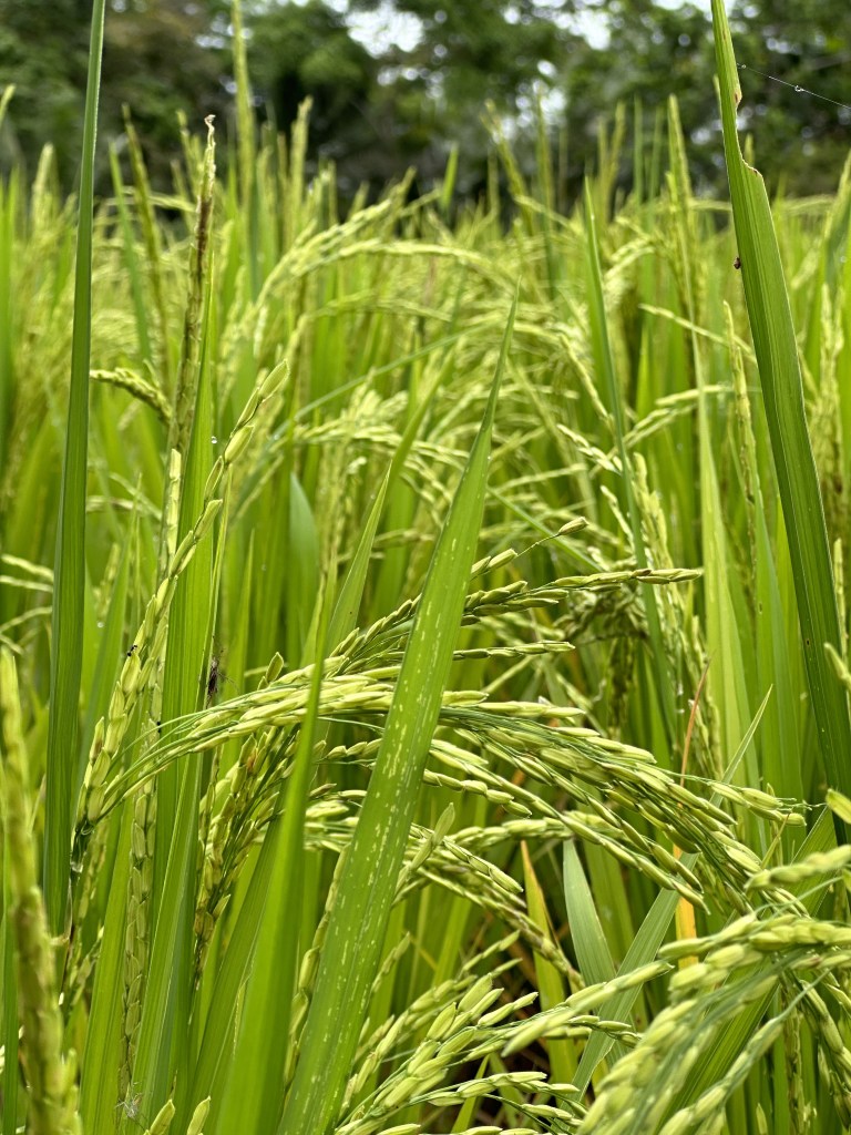 He explained how hard working they all have to be on the land and how they don’t sell the rice, they share it with the families in the area. Each piece of land was owned by a family. He said there is a real sense of community – they look our for each other. It reminded me of my family back home in Palestine and how community/family is everything to them. He showed the rice leaf and how he pealed it so rice grains can come out – it’s only ready once the leaf turns yellow.