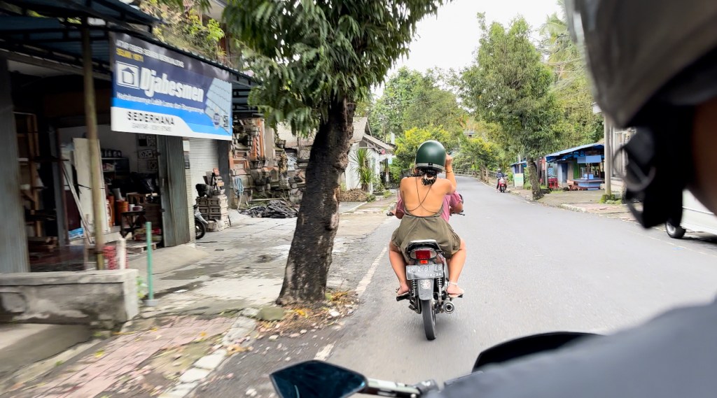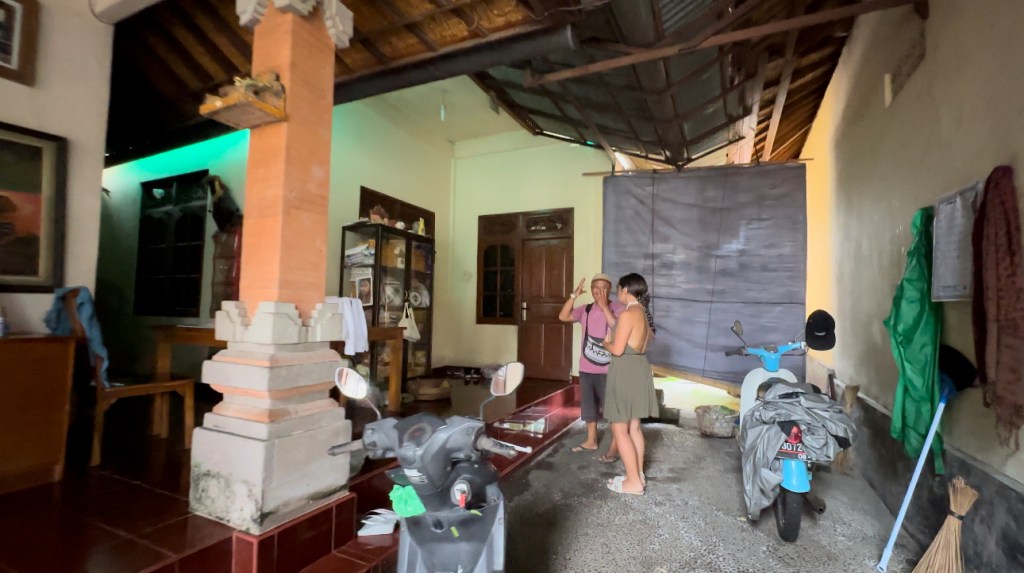 We spent a few hours walking and talking before he made a few phone calls to his family. Before we knew it, his wife and son came in two separate scooters and he asked if we wanted to come and see a typical Balinese home! Of course, we accepted the kind offer and so we jumped on and he took us in to introduce us to his family and see what a family compound looks like. He explained about his traditions and family life. It was beautiful meeting the family and hearing these stories.