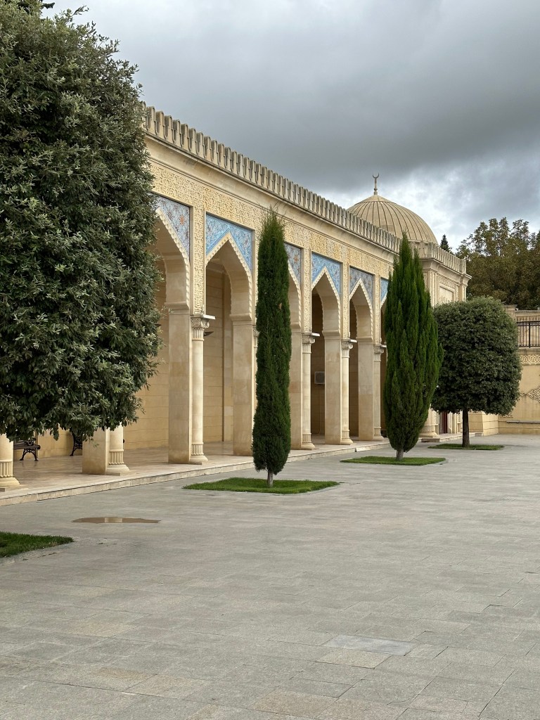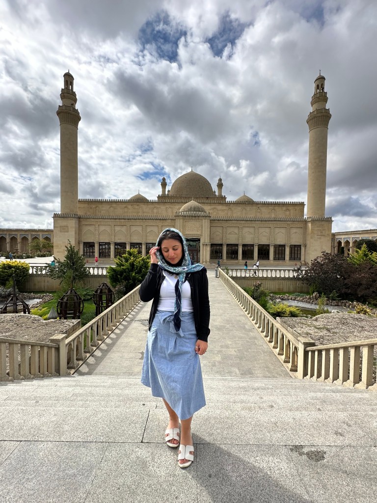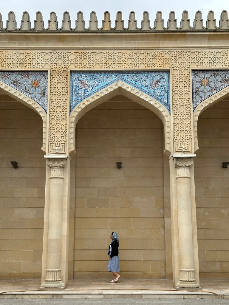 Next, we visited the Juma Mosque, which is not only the oldest mosque in Azerbaijan but also the first in the Caucasus region. This was a really peaceful stop. We took some time to pray and walk around, soaking in the calm atmosphere and beautiful architecture. If you’re visiting, make sure to bring a scarf or something to cover up.