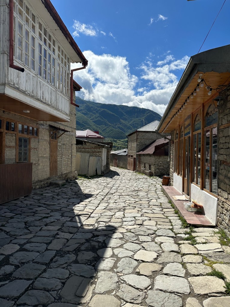 This mountain village, known for its cobbled streets and traditional crafts, quickly became one of my favourite places in Azerbaijan. It didn’t feel touristy at all – just authentic, quiet, and full of character.